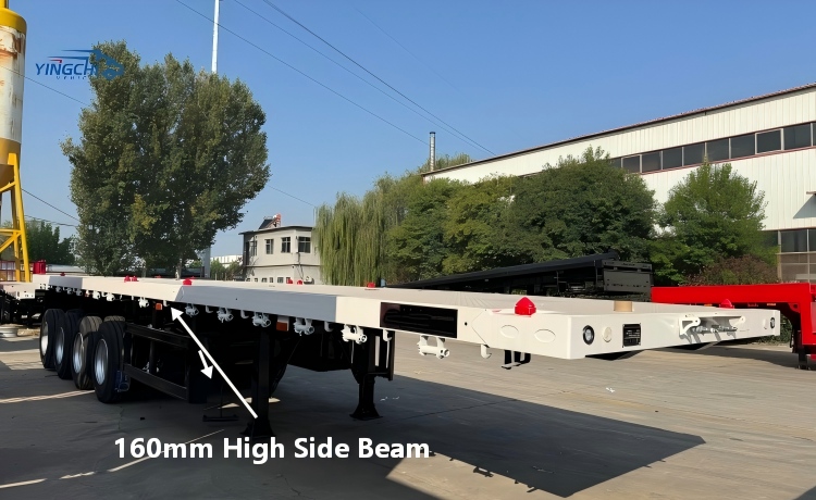 More importantly, our flatbed container trailer also has more advantages in bulk cargo. It has no fences or side panels, and the body is a flat cargo loading platform with no fixed cargo restrictions.