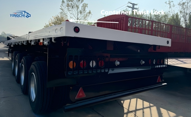 Yingchi 4 axle 45 ft shipping container trailer for sale is a good choice. It provides customers with more convenience and flexibility when transporting container cargo. The container is fixed by the twist locks carried by the trailer itself, and customers do not need to perform other operations.