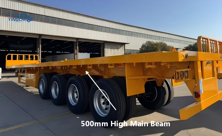 The design size of this 4 axle flatbed trailer with air suspension can accommodate one 40 foot container or two 20 foot containers. At the same time, this air suspension flatbed trailer can also be used to transport high-end precision instruments and other goods.