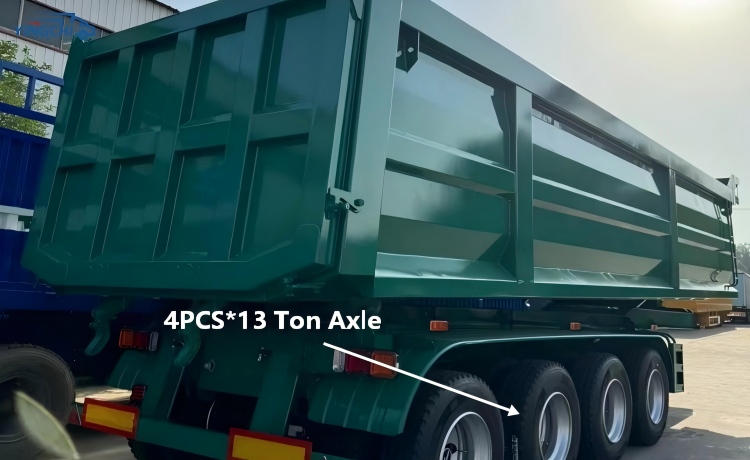 High quality, low price 4 axle hydraulic semi tipper trailer have a load capacity of 60 tons, 80 tons and 100 tons. This type of trailer has a good advantage in transporting heavy bulk cargo, and is deeply loved and favored by customers.