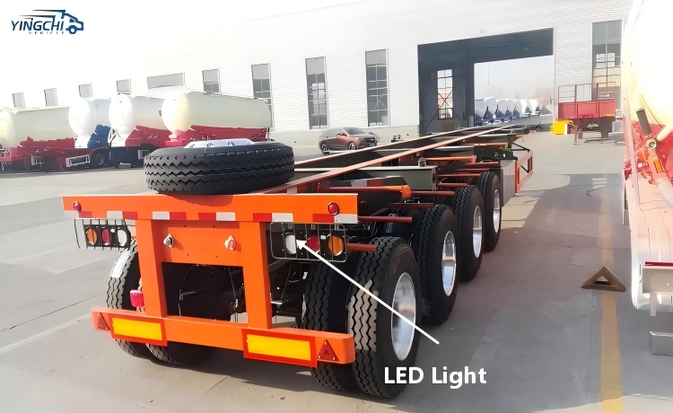 Yingchi skeleton container 4 axle trailer for sale with the lowest factory price. It is mainly designed and manufactured for transporting 20ft, 40ft, 45ft and 48ft containers within the port and terminal area.