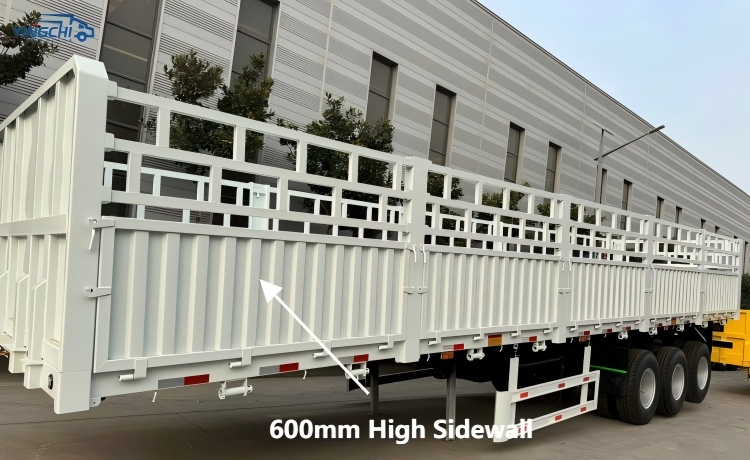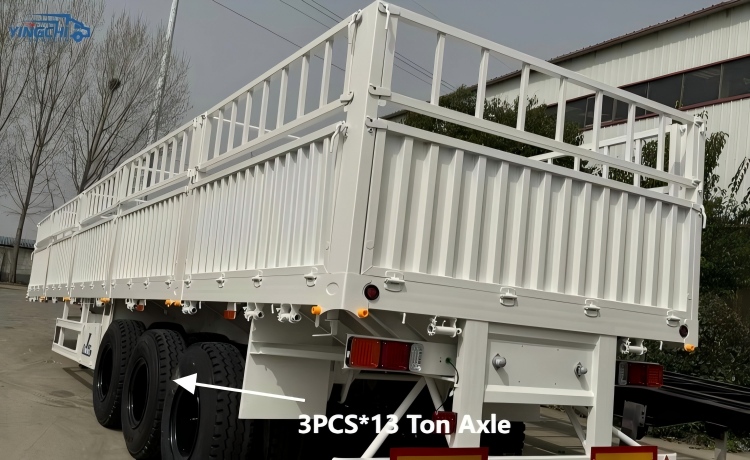The fence semi trailer we sell adopts a fence design structure, and the height of the fence is 600mm, 800mm, 1000mm or 1200mm for you to choose. The payload of this tri axle stake livestock trailer for sale is 60 tons, which can meet most transportation operations.
